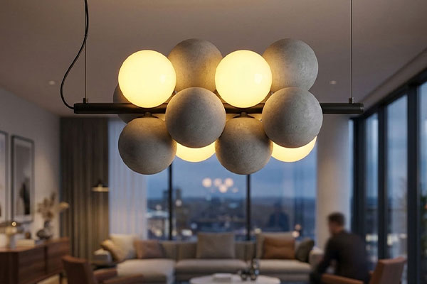 Bej Kumaş Kaplı Japandi Tarzı Sarkıt Küre Lamba