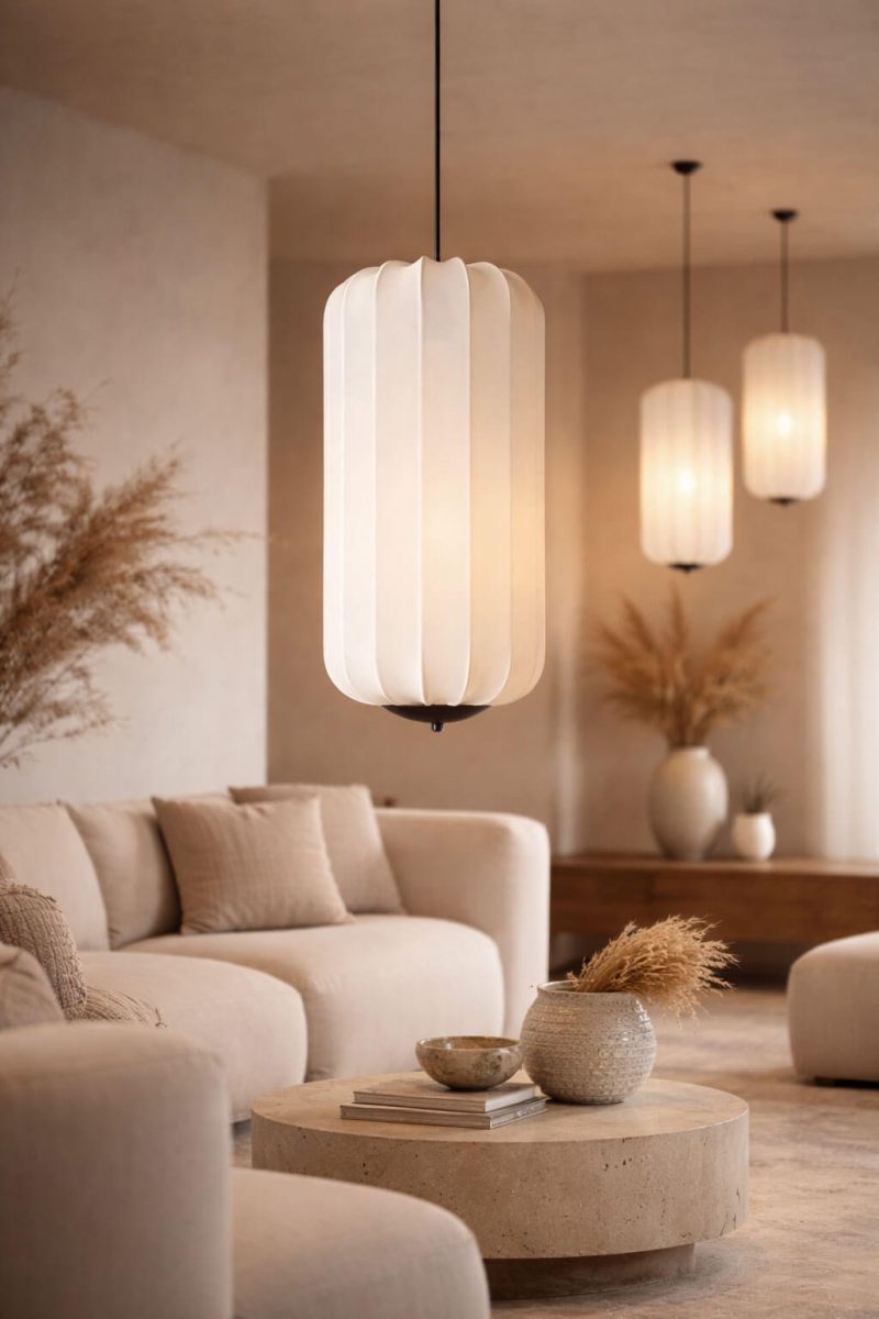 | Ürün Adı | Bej Kumaş Kaplı Japandi Tarzı Sarkıt Lamba Seti |