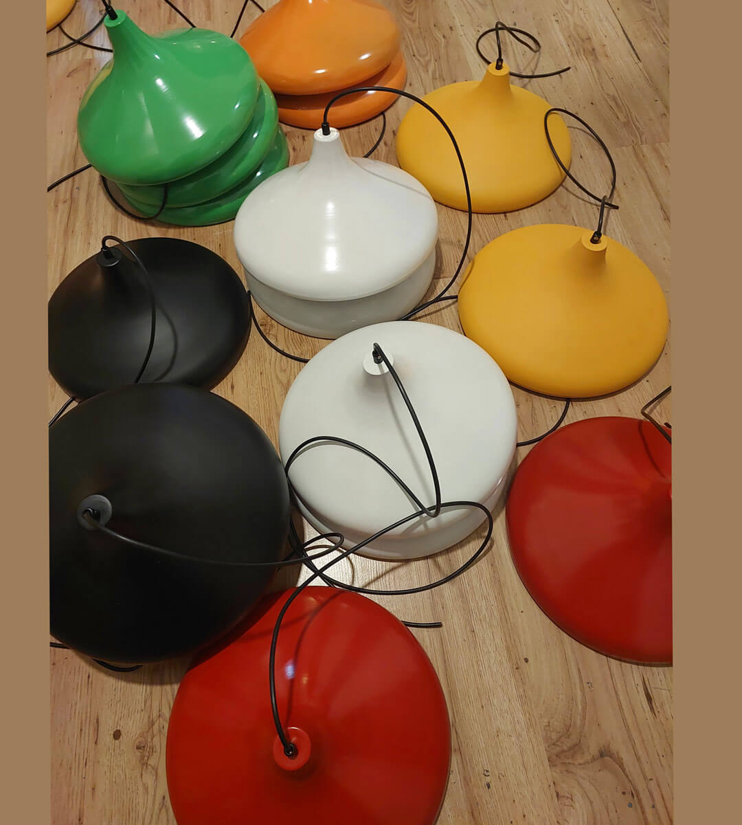 Modern siyah dış yüzey + beyaz iç yüzey – sıcak ışık yansıması sağlayan premium görünüm