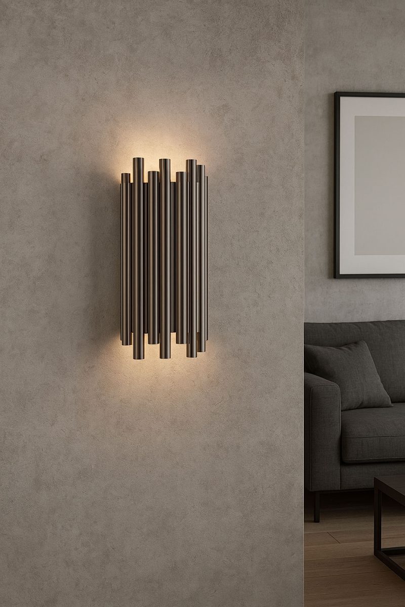 İç Mekan Çift Yönlü Boru Platin Aplik BAC 1111, modern ve retro esintileri bir arada sunarak duvarlarınıza şıklık ve sofistike bir hava katar.